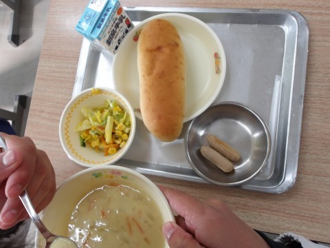 今日は,ニュージーランドの郷土料理「クマラスープ」です。ニュージーランド産のさつまいも(クマラ)を使いますが,今日はさつまいもを使って作られています。