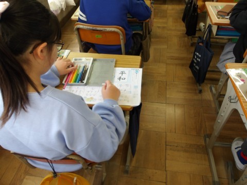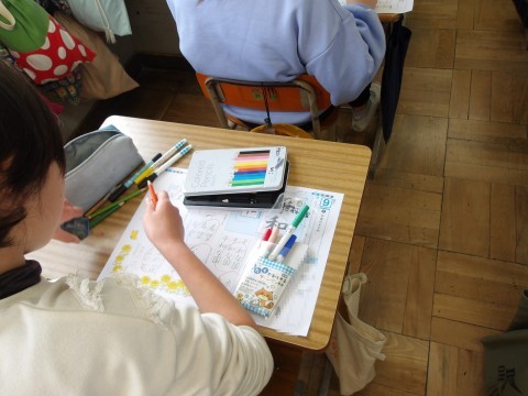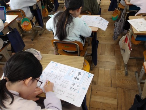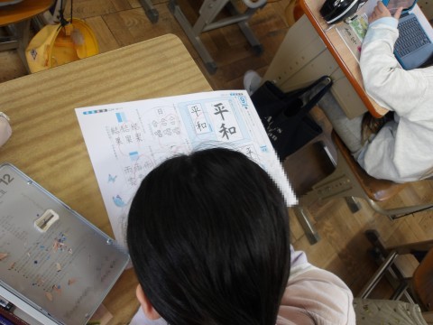 書写では,プリントを使って学習したことのまとめをしています。