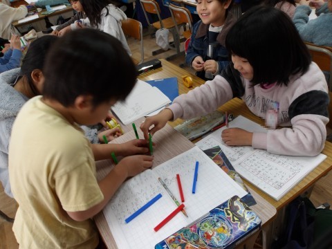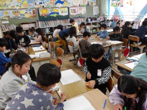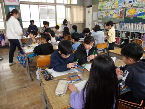 算数「はこの形のへんや頂点について調べよう」では,箱の面の数や面の形について,実際に教材を使いながら箱を組み立ててみます。
