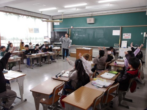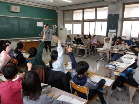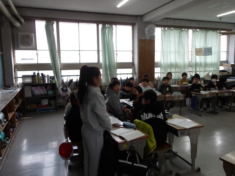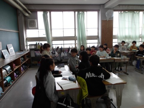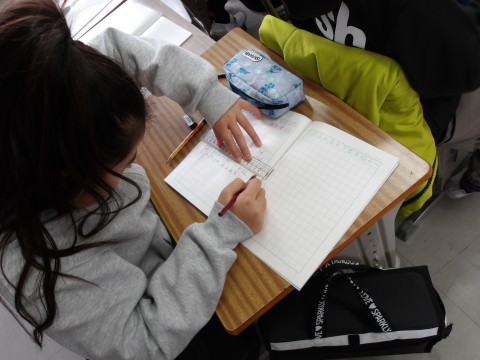 算数では,班に分かれて,2ケタ×2ケタのかけ算のひっ算の仕方ついて学習をしています。自分の考えをしっかりと発表しています。3ケタになってもひっ算の仕方は同じですね。