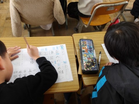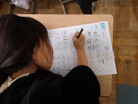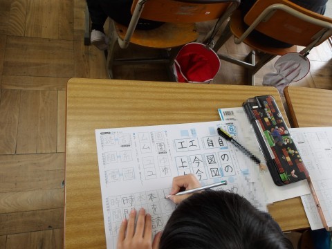 書写では,文字の形や形が変わるところに気を付けて書いていきます。集中して取り組んでいます。