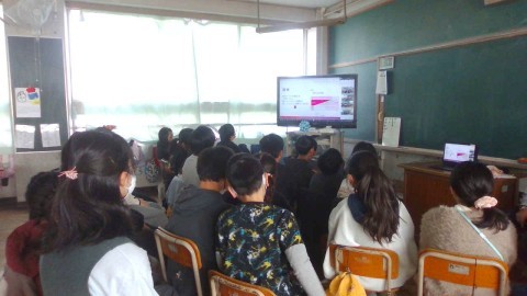 5年生が,オンラインで深井西小学校と学校群交流を行いました。深井小学校からは,国語「固有種がおしえてくれること」を学習して,それぞれが考えた固有種についての課題に対して,統計資料を集めて説得力のある動画を作成し,深井西用学校の5年生と共有しました。