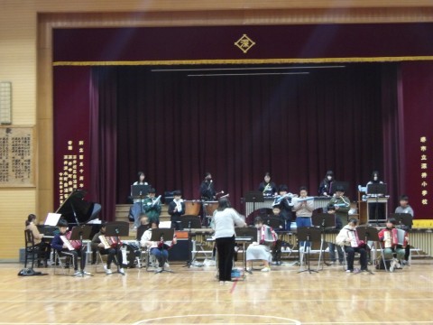 クラス合奏の練習です。こちらのクラスの楽曲は,個人が際立つ楽譜になっているようで,一人ひとりの楽器の音がよく響きます。