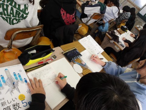 算数では,八角形の性質について学習しています。辺や角に注目して調べていきます。