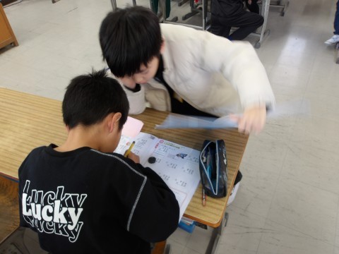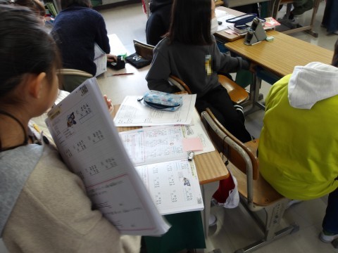算数では,互いに学び合いながら学習を進めています。先生が工夫をして学び合う場の設定をしています。