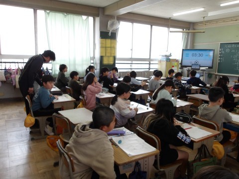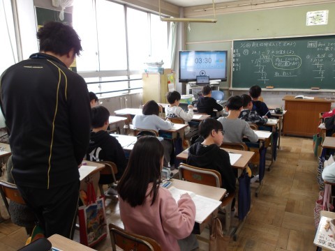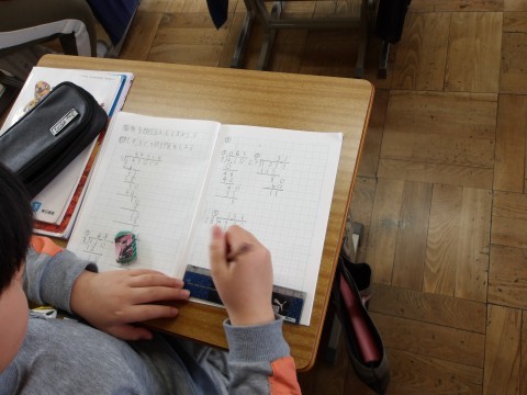 算数では,商を四捨五入して求める学習をしています。たくさんの問題を解いて,分かりにくいところは自主学習で深めるとよいですね。
