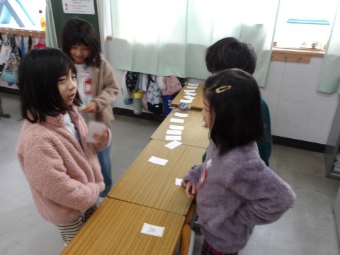 国語で学んだ「ものの名まえ」を使って,お店屋さんごっこをします。ていねいに,えがおで,聞きやすい声でやり取りをします。お客さんは,ひとつひとつの名まえをていねいに言うようにします。