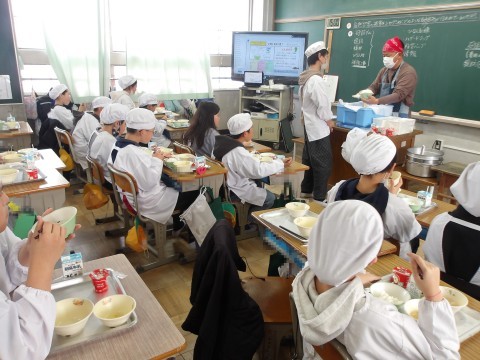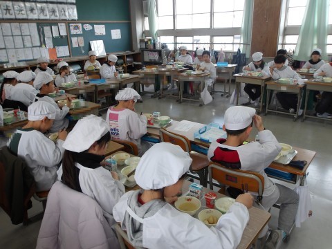 今日の献立「どんがら汁」は,山形県庄内地方の郷土料理・漁師料理です。寒鱈が,余すことなく使われており,とてもおいしく,たくさんの人がお代わりをしていました。