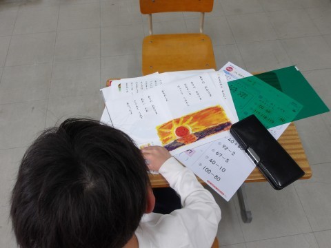 今日も先生と一緒に学びます。集中して先生の話を聞いています。