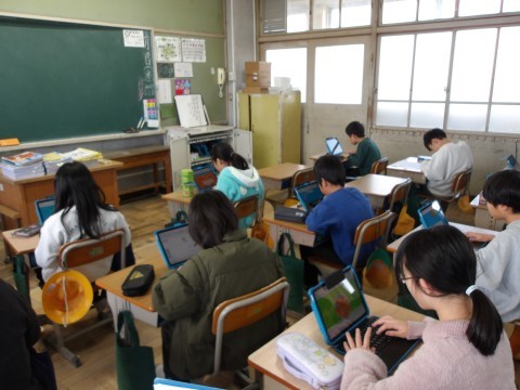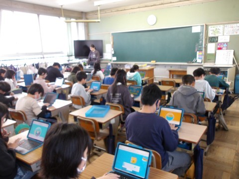 国語「風船でうちゅうへ」の単元テストが行われています。終わった人は,タイピング選手権に向けて練習をしています。