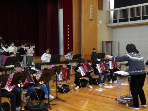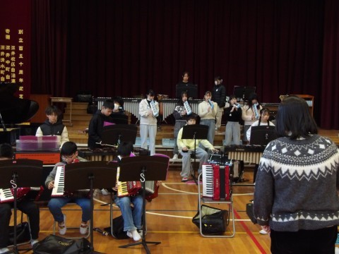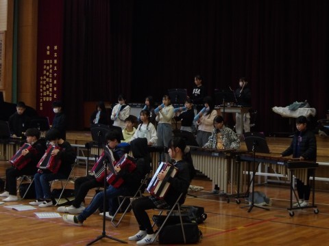 3組が,クラス演奏「ヤングマン」の最後のところを練習しています。