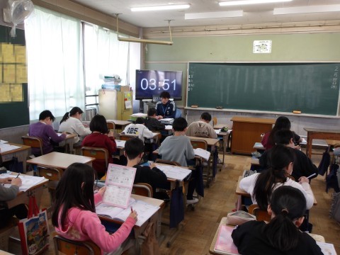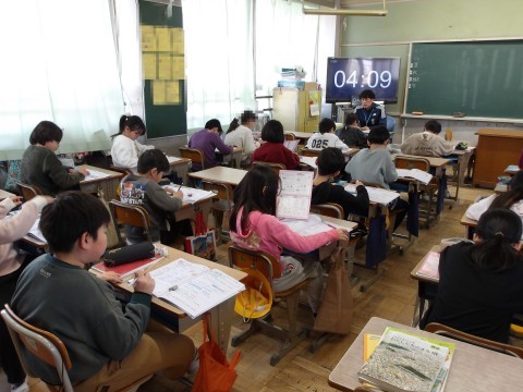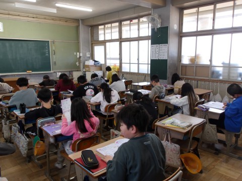 算数では,ドリルを使って小数のわり算の復習をしています。たくさんの問題を解いて,計算の仕方を覚えよう。