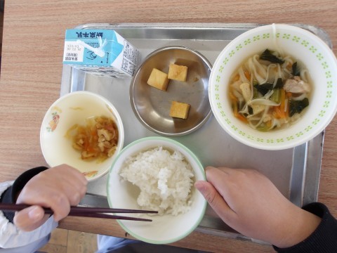 今日の献立は,「切り干し大根」です。干してあったと思えないくらい,やわらかく炊き上げてくれています。