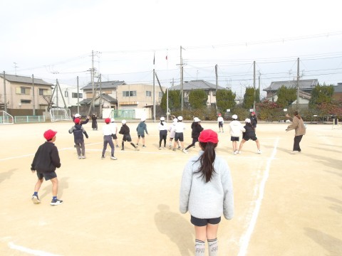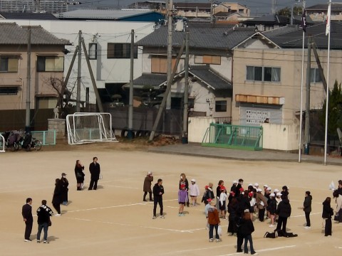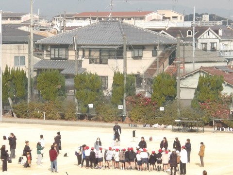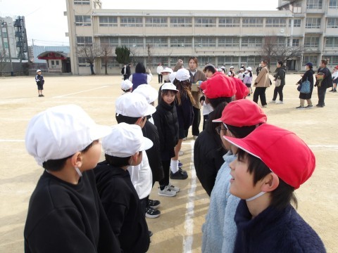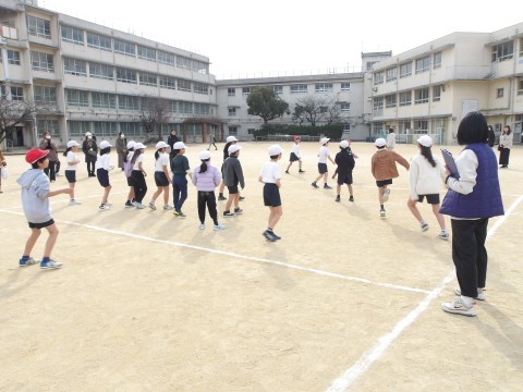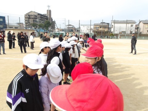 学年合同で体育の学習をしています。今日は,ドッチボールをしてら,お家の人も一緒に借り人競争をしたりして体を動かしました。最後には,日ごろは言えない「もうすぐ4年生になります。いつもありがとう。大好きです。」とメッセージを送りました。