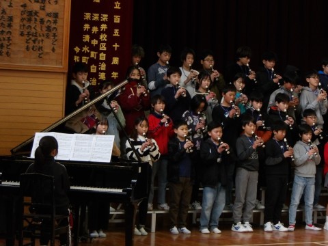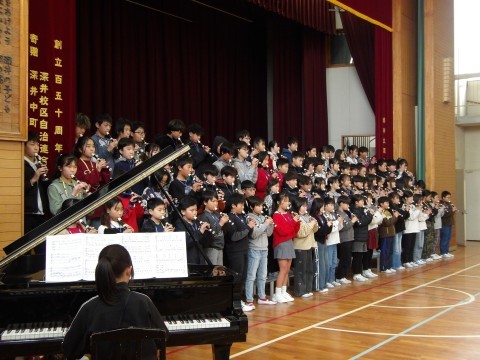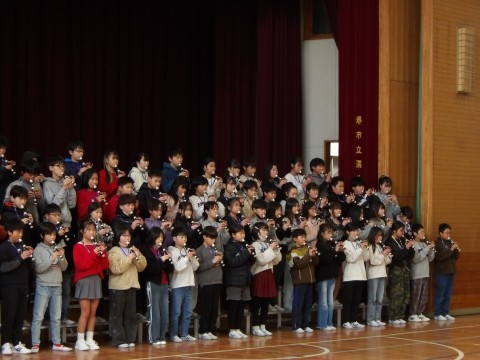 6年生が,お家の人を卒業コンサートに招待しました。「ジブリdeリコーダー」では,各クラスでのレコーダー演奏と学年演奏を披露しました。クラス合奏では,各クラスが演奏前にひと工夫を凝らして,練習の成果を発揮した見事な演奏でした。最後は,学年合唱「絆」を見事に歌い切りました。卒業までのカウントダウンが始まっています。残りの小学校生活を,しっかりと絆を深め,楽しんでほしいと思います。6年生のみなさん,すてきな演奏をありがとう!