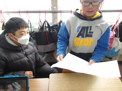 今日は,総合的な学習で1年間を通して進めた「STEAM教育」の集大成でした。日常生活から課題を見つけ,「創才 サイエンスラボ」さんにご指導いただきながら課題を解決するアイテムをつくってきました。今回の「総合的な学習」では,国語で習った表現の方法を活用したり,タイヤを動かすために円周を求めたりと今まで習ったことを随所に散りばめながら,試行錯誤をし「自分たちの思い」を形にしました。また,お家の方には子どもたちの成果物を見て,メッセージを書いてくださりありがとうございます。子どもたちの励みになります。5年生のみなさん,たくさん考え,たくさん話して,1年間よく頑張りました☆