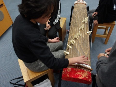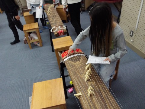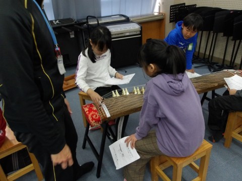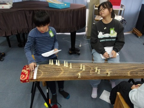音楽では,琴の演奏に取り組んでいます。「さくら さくら」を上手に演奏しています。