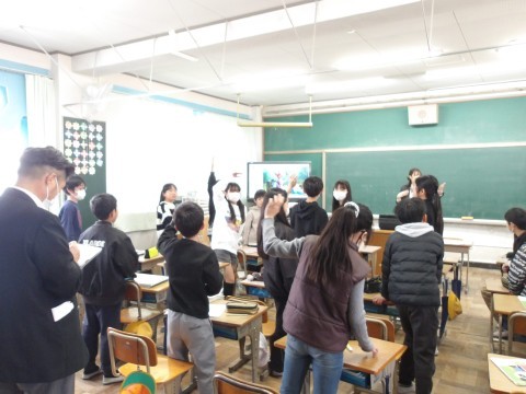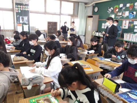 国語「大造じいさんとガン」の研究授業が行われました。今日が1時間目のこの単元では,物語を一言で表し,考えを伝えあうことをめあてに授業が行われました。
