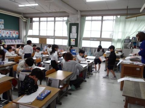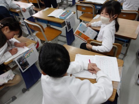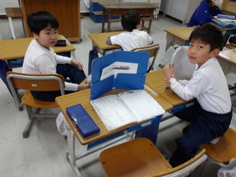 国語では,昨日発表していないグループの「これはなんでしょう」の確認と準備をしています。終わった人は,漢字の復習ややり直しをしています。