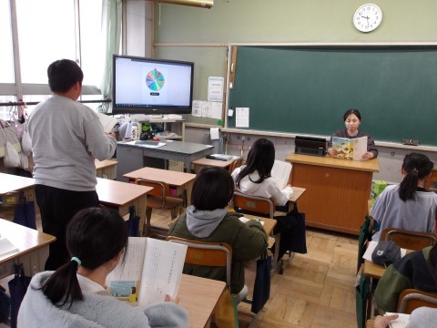 国語「スワンレイクのほとりで」では,音読の一行読みを行っています。