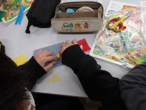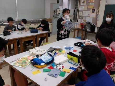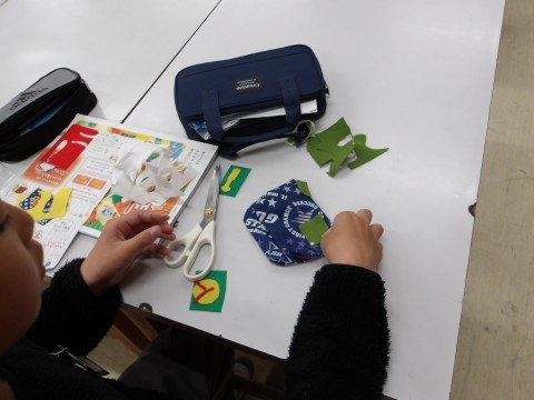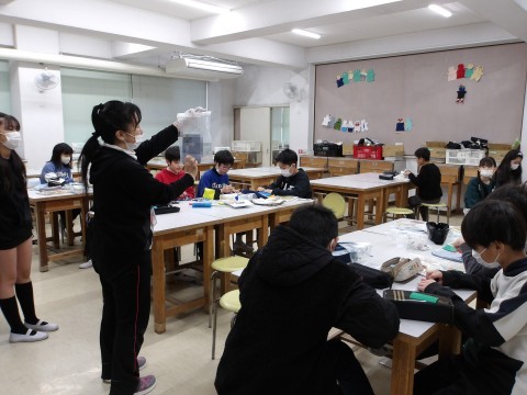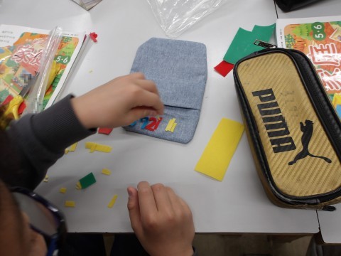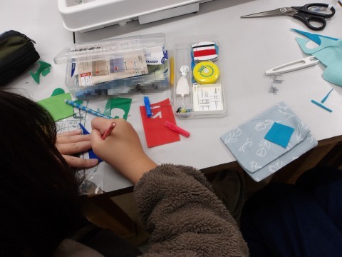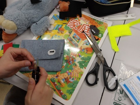 家庭科では,「ティシュポーチ」を制作しています。出来上がった人から,アップリケを付けています。