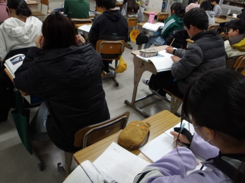 国語「海の命」では,太一の生き方に一番影響を与えたのはだれかについて,考えています。
