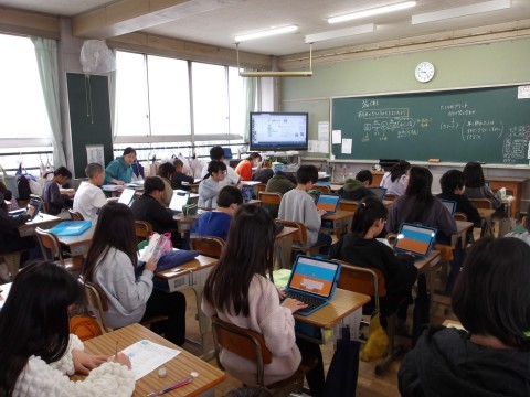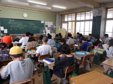 理科「水の三つのすがたをまとめよう」では,単元の確かめプリントに取り組んでいます。終わった人は,タブレット端末で復習をしたり,タイピングの練習をしたりしています。