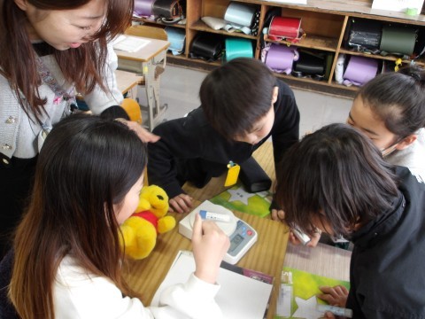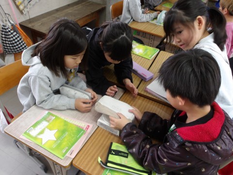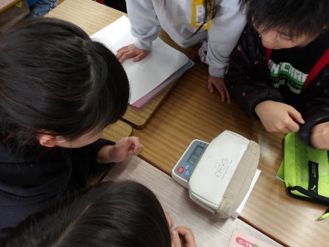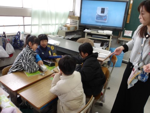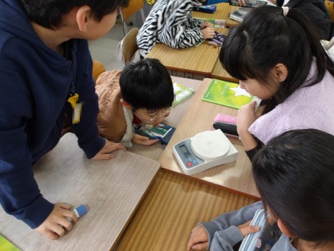 理科では,電子てんびんの使い方を学習します。