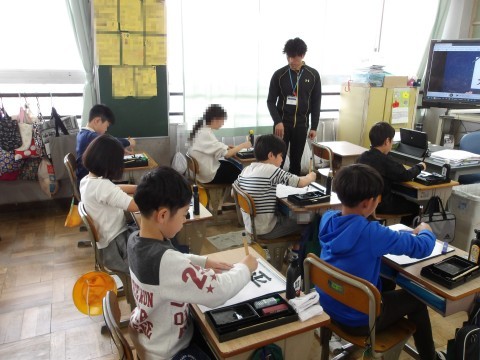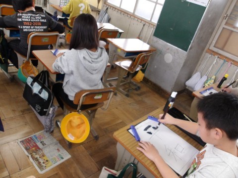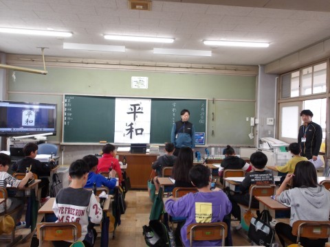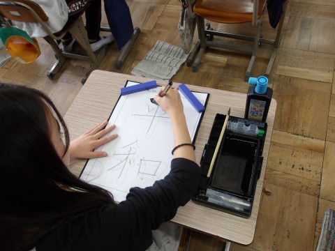 書写「平和」に取り組んでいます。先生の説明をよく聞きながら,書いていきます。