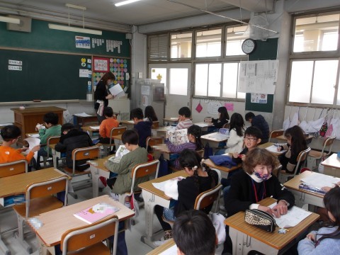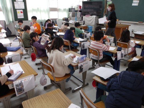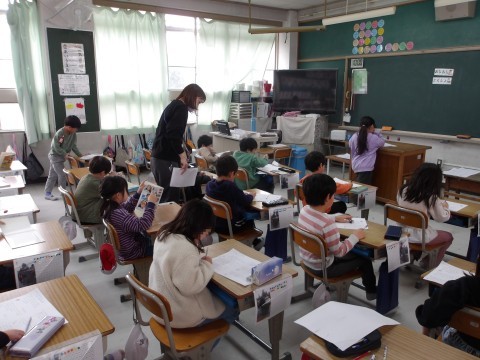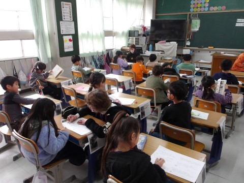 算数では,たし算とひき算について,プリントの練習問題に取り組み,答え合わせをしています。すらすらできるようになってきたかな?