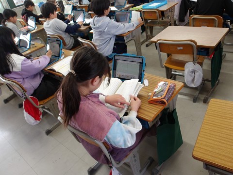 国語「モチモチの木」では,学習したことをふまえて、「私は誰でしょう?」の登場人物クイズを自分たちで作っています。