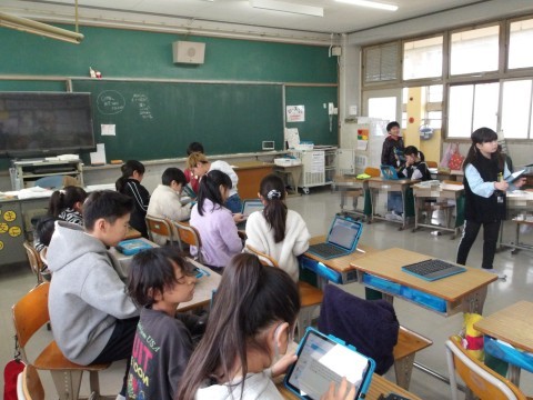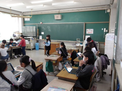 総合的な学習の時間では,障害者理解について学習をしています。車いすや白杖などについて調べたことをまとめて、発表のための準備をしています。相手に伝わるように練習をしています。