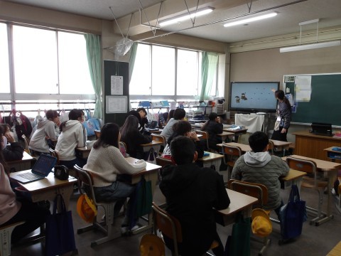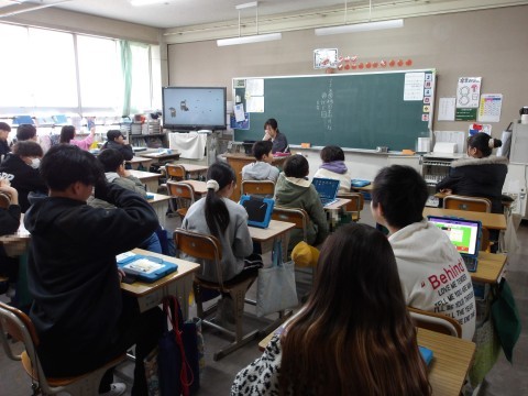 理科では,先生が作成した教材で,復習をしています。