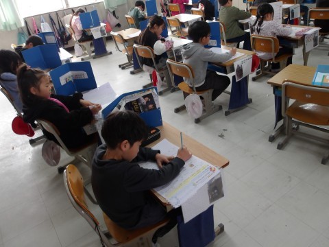 国語では,「1年生で習った漢字」のテストに取り組んでいます。