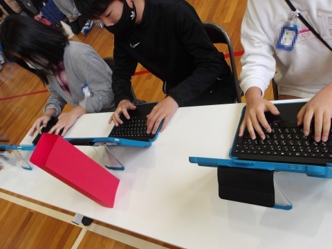 6年生のタイピング選手権が行われました。2回目なので,慣れた様子ですが,大勢の人の声援に緊張気味でした。結果は,さすがの点数でした。みんな「6年生すごい!」と感心していました。