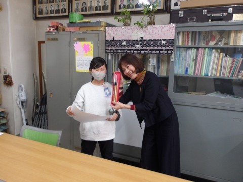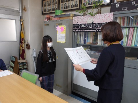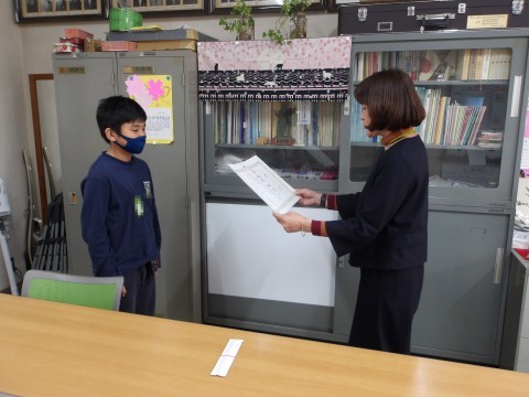 オンラインで表彰を行いました。よくがんばりました。