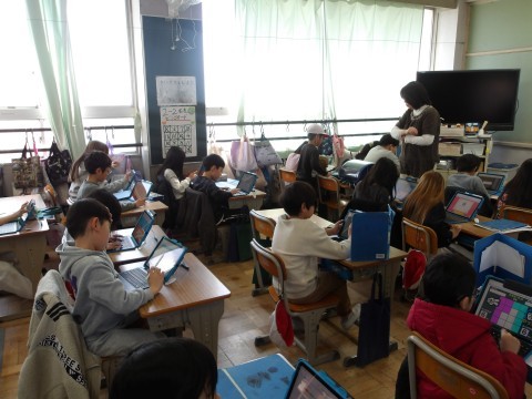 こちらのクラスでも,「スーホの白い馬」の単元テストが行われています。早く終わった人は、タイピング練習に熱心に取り組んでいます。