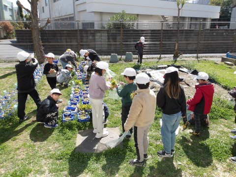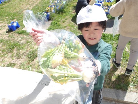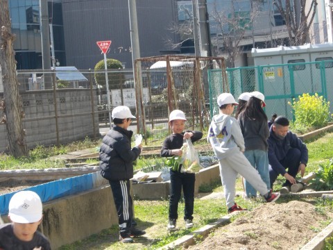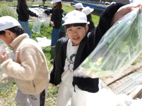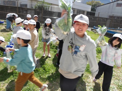 生活科で育てた「甘味カブ」の収穫を行いました。立派な甘味カブが育ちましたね。うれしいね。