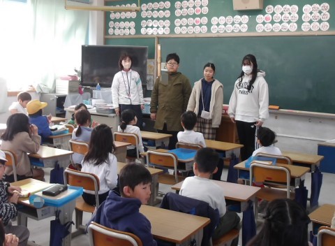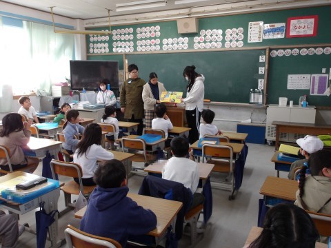 6年1組が,1年1組には「ひつじのショーン」を,2年1組には「りんごかもしれない」の絵本を読み聞かせしてくれています。みんな嬉しそうにお話を聞いています。