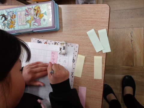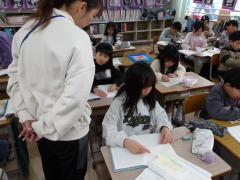 国語「楽しかったよ 2年生」でh,組み立てを考えて発表をする学習をします。「校外学習で遊んだこと」をテーマに,「したこと」「思ったこと」「友だちとしゃべったことや言ったこと」について,それぞれ思い出して付箋に書きだします。