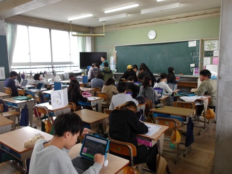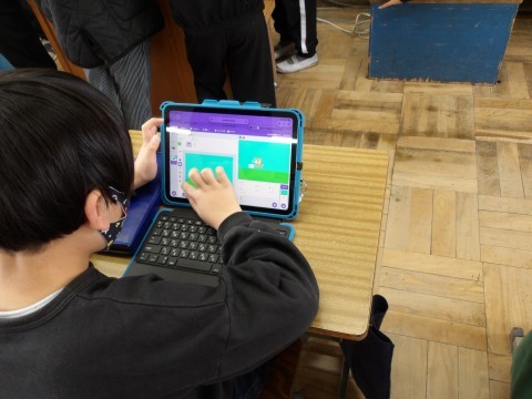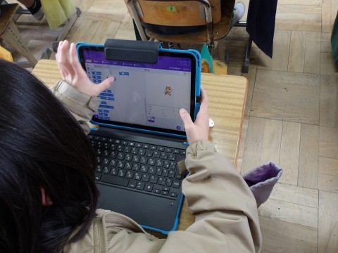 国語「スワンレイクのほとりで」の単元テストが行われています。終わった人は,スクラッチをしています。