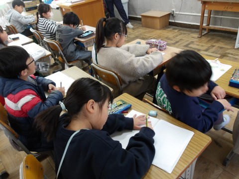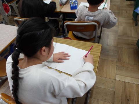 国語「楽しかったよ2年生」では,一年間の楽しかったことをメモしたものを見て,「はじめ」「中」「おわり」をしっかりと意識して組み立て,文章を書きます。