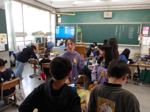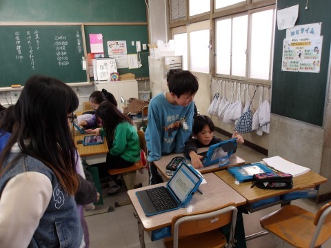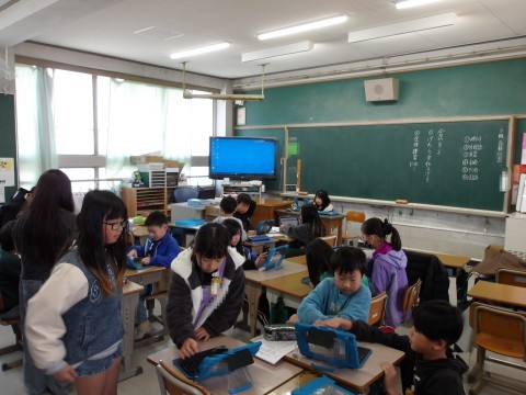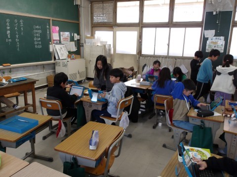 こちらのクラスでも,総合的な学習の時間に発表する準備をしています。原稿を仕上げて,2年生に伝わるように練習をします。