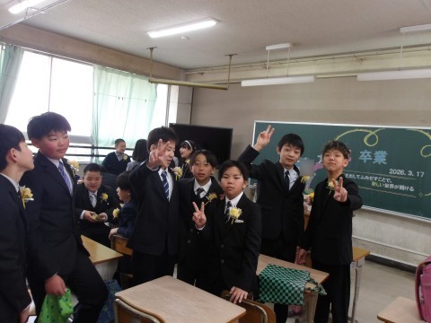 6年生が登校しました。教室で過ごすのも今日が最後ですね。さみしくなるなぁ。
