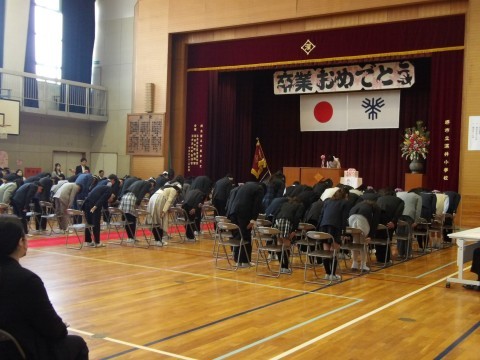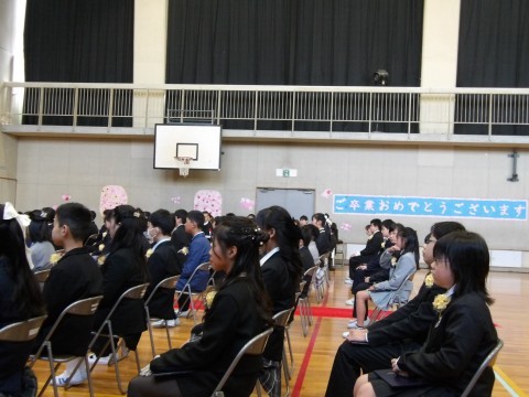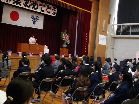 学校長からは,一緒に過ごした2年間の学年目標に基づくエピソードを中心に,また,たゆみなく成長し,前進していくみなさんの前途を願って式辞を述べました。