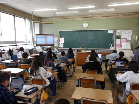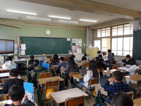 算数では,タブレットで振り返り問題に取り組んでいます。