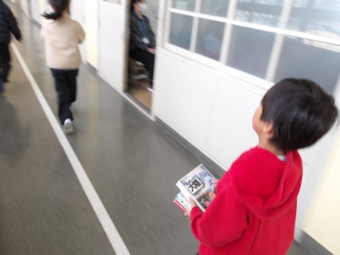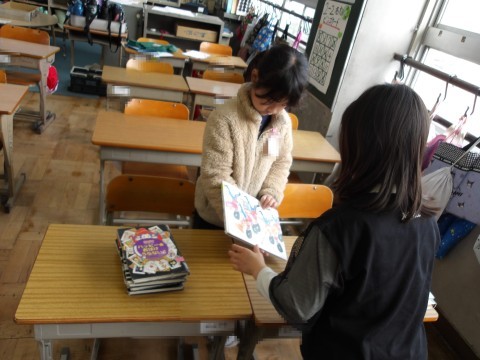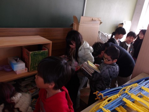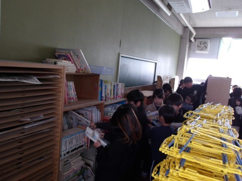 2年生は,学級文庫の整理をしてくれています。5冊ずつ運んで,ひもでくくります。