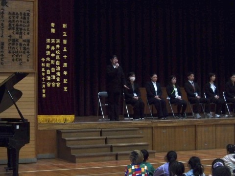 令和7年度の離任式が行われました。深井小学校を去られる先生たちに,お世話になった感謝の気持ちを伝えてお別れします。