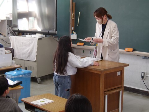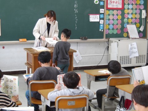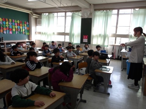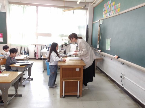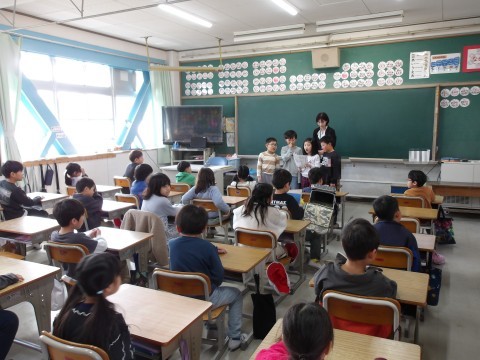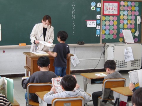 学級最後の日です。いつも通り朝の会をしてから,通知表を受け取っています。できることがたくさんありましたね。よくがんばりました。