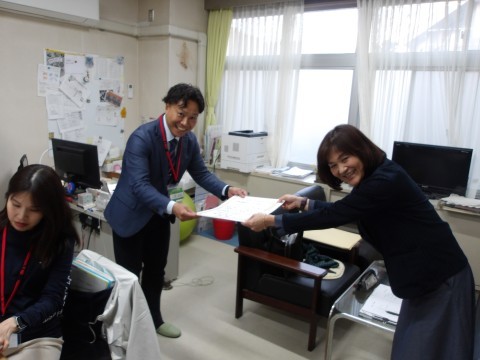 18時より校長室にて,令和8年度 第1回 PTA役員会が行われました。はじめに,令和7年度の役員の方に感謝状を授与いたしました。大変お世話になり,ありがとうございました。